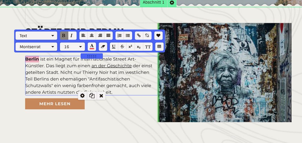 - The text editor will open, which you can use to further format the text and customize its appearance (more information about the text editor and its functions here).